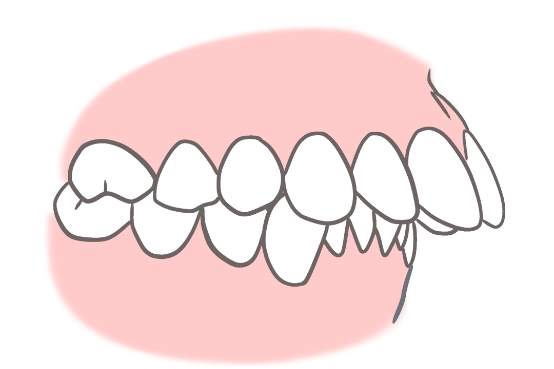 上あごが極端に大きい、下あごが極端に小さいといった骨格が遺伝し、上下のあごの大きさにアンバランスが生じると上顎前突になります。