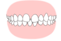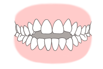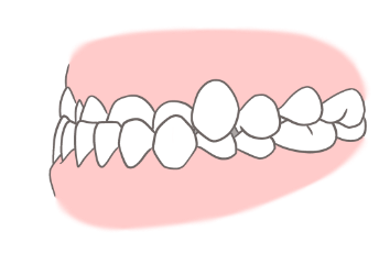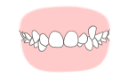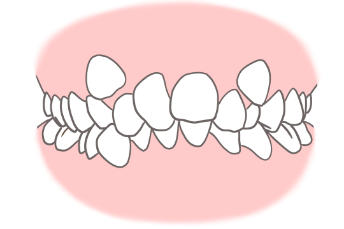 歯と歯が重なり合ってガタガタに並んでいる状態です。一般的に“乱ぐい歯” と呼ばれます。歯列からはみ出した犬歯のことを ”八重歯” といいます。 最も多いお悩みがこの歯並びです。歯同士の重なりが多いこの ”叢生” は、清掃性が悪く汚れがたまりやすいので、様々なお口のトラブルの原因となることがあります。
