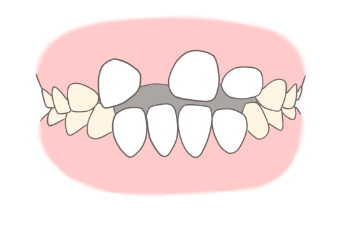 お口の状態にもよりますが、失った歯のすき間は矯正治療で埋めることが可能です。 小児期における歯の喪失は、そのとき限りではなく、将来的な噛み合わせを見据えた治療法を選択することが大切です。 大人では、インプラント・ブリッジ・入れ歯などの補綴治療と、歯を動かしてすき間を埋める矯正治療のどちらが良いのかを検討します。